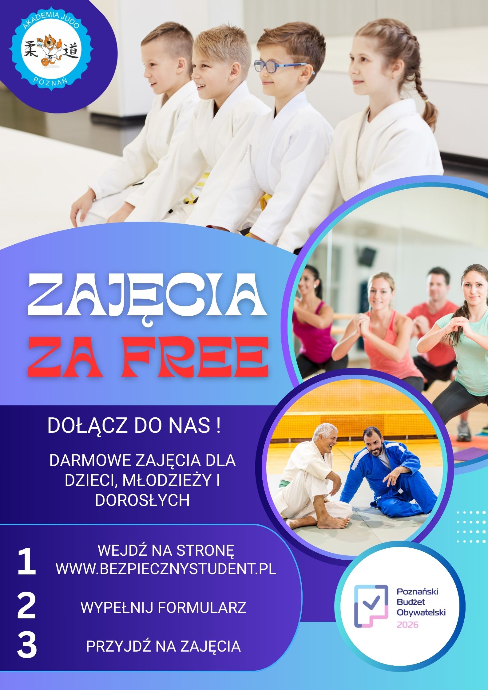 Z ogromną radością informujemy, że na nowym obiekcie sportowym Akademii Judo przy ul. Jarochowskiego 62 wystartowały zajęcia realizowane w projekcie „Bezpieczny Student – Bezpieczny Poznaniak”!